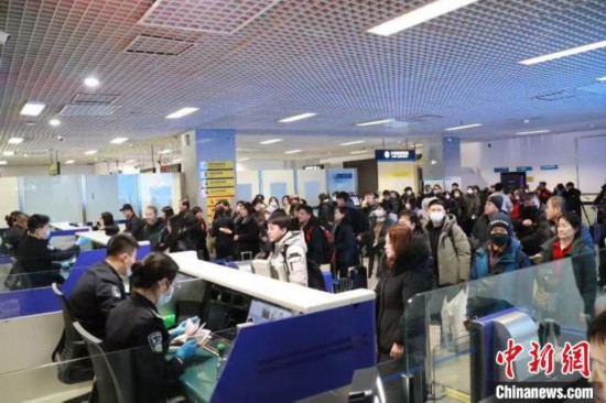 今年春节假期期间,入境旅客在延吉机场排队等候查验。(资料图)麻馨允 摄