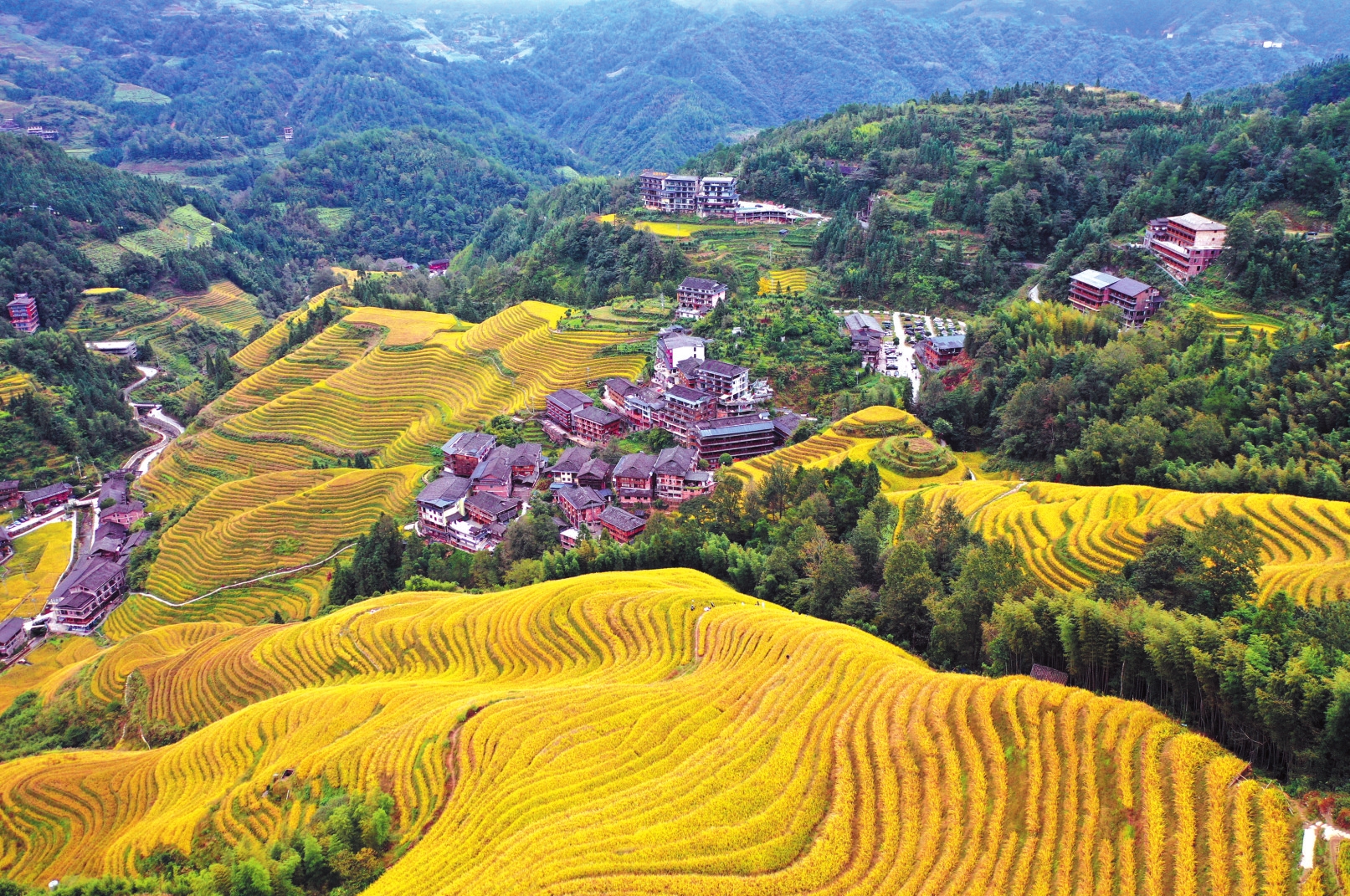 这是广西龙胜各族自治县龙脊梯田及其间村寨风貌(10月22日摄)。