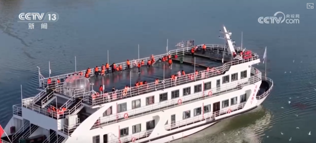 除了在岸上观赏天鹅,游客们还能乘坐游船进入黄河主河道,解锁别样的观赏视角。