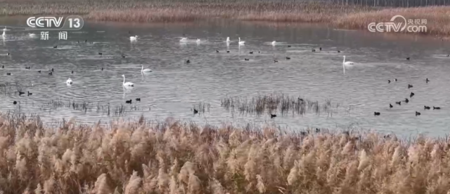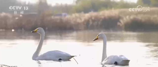 除公园外,在大天鹅频繁活动的农田区域,当地政府也提前做好了准备。2025年,三门峡在黄河沿线共种植了1500多亩的小麦、荷花、蒲草等,为大天鹅们漫长的越冬季提供充足食源。