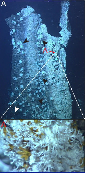 靠近热液喷口的赫斯帕拉尔文氏蠕虫近景图