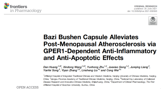 近日,南京中医药大学附属中西医结合医院黄丹博士关于“八子补肾胶囊通过抗炎和抗凋亡作用减轻绝经后粥样动脉硬化”研究,6月25日发表在国际学术期刊《Frontiers in Psychology》上(影响因子为5.810)。