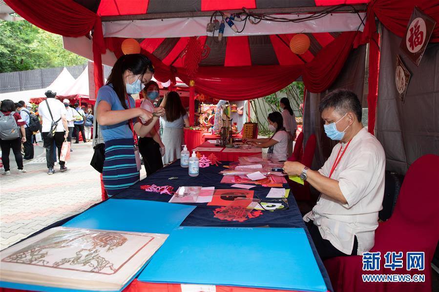 9月26日,在马来西亚吉隆坡附近的马来西亚国家动物园,来宾在“中马文化旅游月·相约大自然”活动上体验剪纸艺术。 由吉隆坡中国文化中心主办的“中马文化旅游月·相约大自然”活动26日在马来西亚国家动物园拉开帷幕,吸引了当地众多市民参与。 新华社记者 朱炜 摄