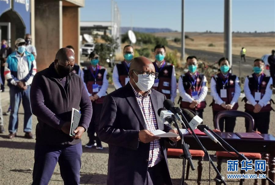 9月27日,莱索托首相马乔罗在首都马塞卢的国际机场欢迎仪式上讲话。 应莱索托政府邀请,中国政府抗疫医疗专家组一行10人于27日乘包机抵达莱索托首都马塞卢,开始对莱索托开展为期10天的抗击新冠疫情援助工作。 新华社发