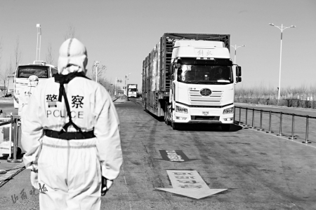 在二连浩特口岸入境通道,数十名身着白色防护服的中国海关和边检人员对载羊车辆和司乘人员进行查验。此前,这些羊在蒙古国免疫无疫区进行了隔离。
