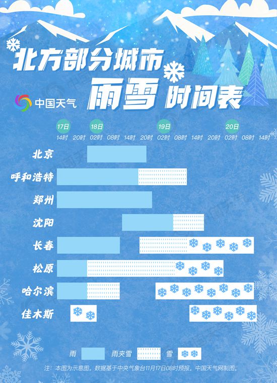 重点城市雨雪时间表出炉 长春哈尔滨等地18-19日雪最强