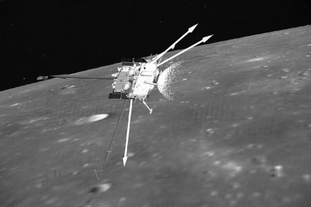 其间,探测器进行快速姿态调整,逐渐接近月表;此后进行障碍自动检测,选定着陆点后,开始避障下降和缓速垂直下降,平稳着陆在位于月球正面风暴洋的吕姆克山脉以北地区。着陆过程中,着陆器配置的降落相机拍摄了着陆区域影像图。