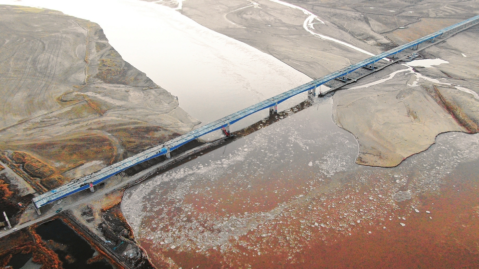 11月22日,黄河内蒙古三湖河口至头道拐河段首现流凌,流凌密度为10%至30%,首次流凌日期较常年偏晚2天。即日起黄河进入2021—2022年度凌汛期,目前黄河水利委员会、相关省(区)和有关单位已启动防凌运行机制,执行24小时值班制度,全面进入防凌戒备状态。图为当日拍摄的黄河宁蒙河段流凌(无人机照片)。新华社发