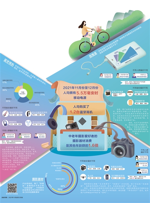 说起户外运动装备,人们首先想到的是运动鞋、冲锋衣、运动背包等老几样,但随着科技的发展,消费者对户外运动相关产品的需求也发生了巨大变化,蓝牙耳机、智能手表等电子产品逐步走上“C”位,其配套设备如移动电源等也成为户外运动必不可少的装备。户外装备的种类、功能、形态随之升级,众多新产品应运而生。