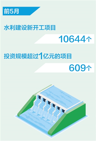 本报北京7月4日电 (记者李晓晴)记者日前从水利部获悉:今年前5月,全国水利建设全面提速,取得了明显成效。在推进项目开工方面,新开工10644个项目,投资规模4144亿元;其中投资规模超过1亿元的项目609个。吴淞江整治、福建木兰溪下游水生态修复与治理、雄安新区防洪治理、江西大坳灌区、广西大藤峡水利枢纽灌区等14项重大水利项目开工建设,投资规模达869亿元。