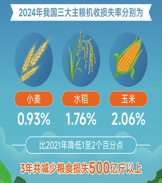 在加工利用方面,我国制定实施食用米胚、大豆蛋白等加工技术规范,合理控制加工精度,抓好副产物综合利用,粮油加工损失率降低到1%以内;推进豆粕减量替代行动,普及推广低蛋白日粮技术,饲料中豆粕用量占比从2017年的17.9%降低到2024年的13.7%,相当于节约豆粕近2000万吨。