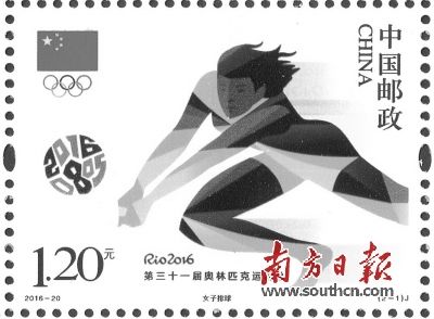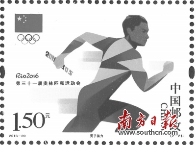 据介绍,第一枚邮票选择排球比赛经典瞬间,人物具有动感,渐变色条也带出运动的速度感,邮票颜色特别选择了代表巴西的绿、黄、蓝三色。而第二枚邮票选择了男子接棒后奔跑瞬间,颜色以代表中国的红、黄色为主。邮票由北京邮票厂采用影写版印制,特殊工艺运用体现明信出邮票动感和科技感。