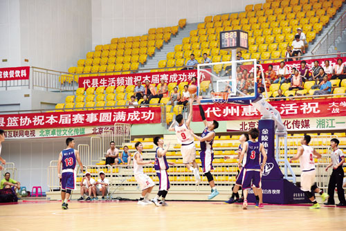 骑游硝烟刚散,篮球烽火又燃。8月23日起,代县“博克森杯”中国大学生篮球精英赛精彩激烈,来自全国8所名校的96名大学生队员参加了此次篮球精英赛。清华大学、太原理工大学、山西大学、上海交通大学、中国民航大学、浙江大学、北京体育大学和山东大学的8支篮球劲旅分成两个小组,先进行小组巡回赛,然后再进行交叉淘汰赛,冠军赛将于8月28日晚产生。比赛场上8支篮球劲旅犹如猛虎下山,好似雄鹰展翅,争抢激烈,拼搏勇猛,扣人心弦,精彩瞬间赢得观众一阵阵掌声。目前北京体育大学以83比81战胜中国民航大学,山西大学以78比72战胜上海交通大学,清华大学以85比84战胜浙江大学,太原理工大学以79比73战胜山东大学。图为队员在激烈比赛中(石俊文摄影报道)