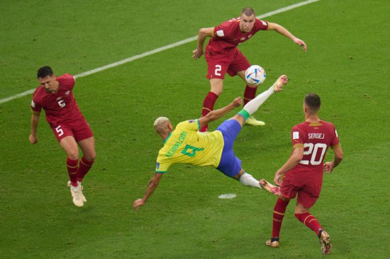 在首轮最后一场较量中,G组的巴西队与塞尔维亚队在上半场没能进球。易边再战,巴西队的理查利森接管了比赛,他先是在第62分钟补射入网,又在第73分钟凭借个人能力完成一记精彩的转身倒钩破门,为球队锁定胜局。