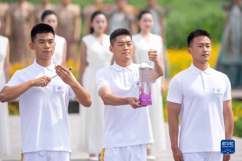 6月15日,火种护卫将圣火引入火种灯并展示。新华社记者 江汉 摄