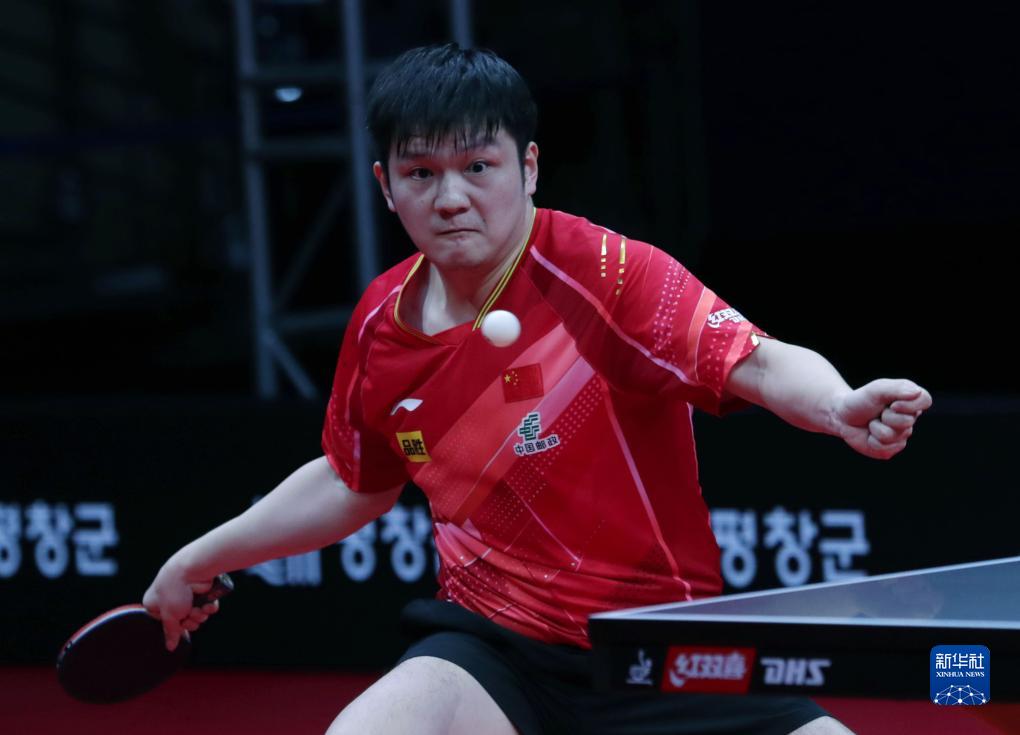 9月10日,樊振东在比赛中回球。新华社发(李相浩摄)