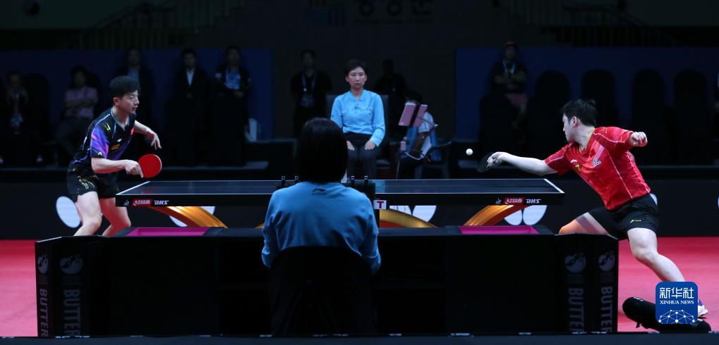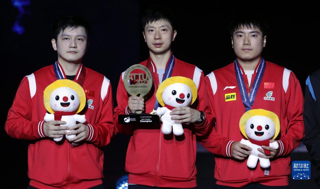 当日,2023年乒乓球亚锦赛男单决赛在韩国平昌举行。中国队选手马龙以3比2战胜队友樊振东,夺得冠军。
