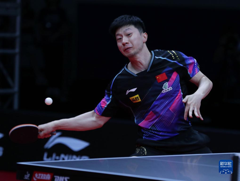 9月10日,马龙在比赛中回球。新华社发(李相浩摄)