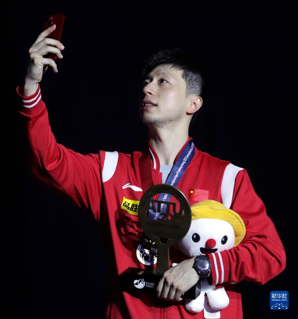 9月10日,马龙在颁奖仪式上自拍留念。新华社发(李相浩摄)