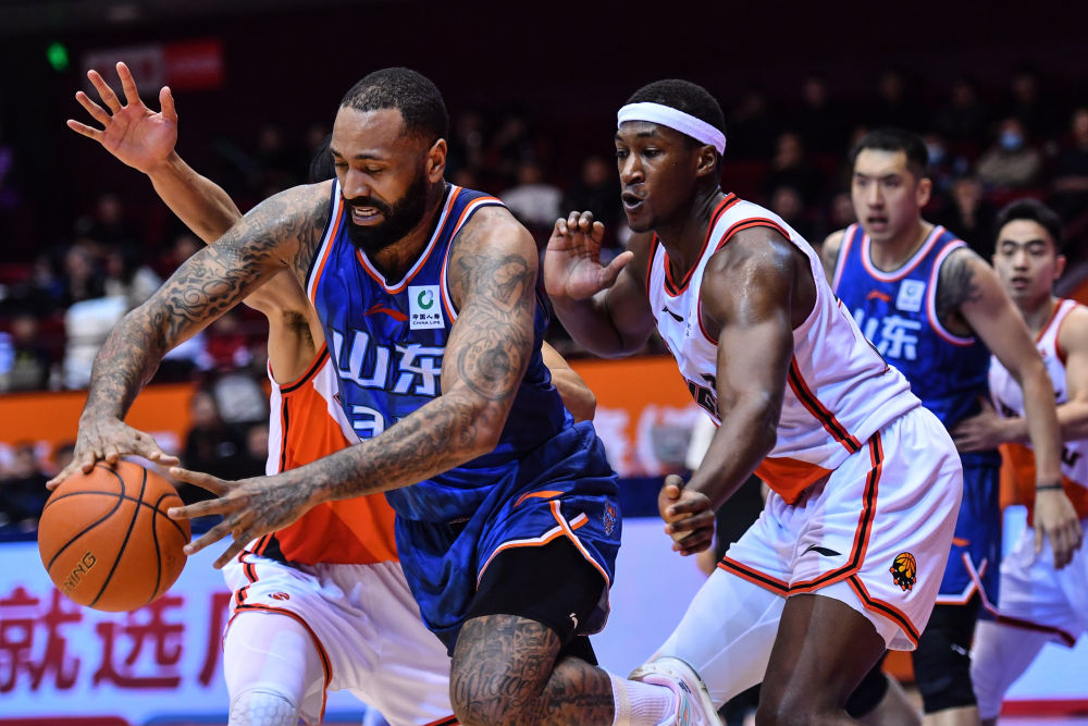 12月7日,山东队球员吉伦沃特(左)在比赛中突破。新华社记者 朱峥 摄
