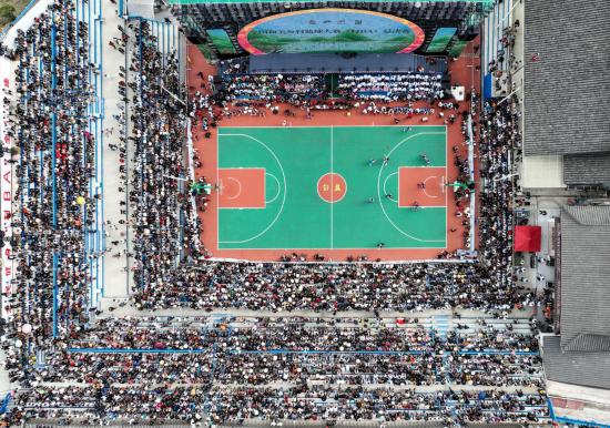 这是10月25日拍摄的全国和美乡村篮球大赛(村BA)总决赛现场(无人机照片)。新华社记者 欧东衢 摄