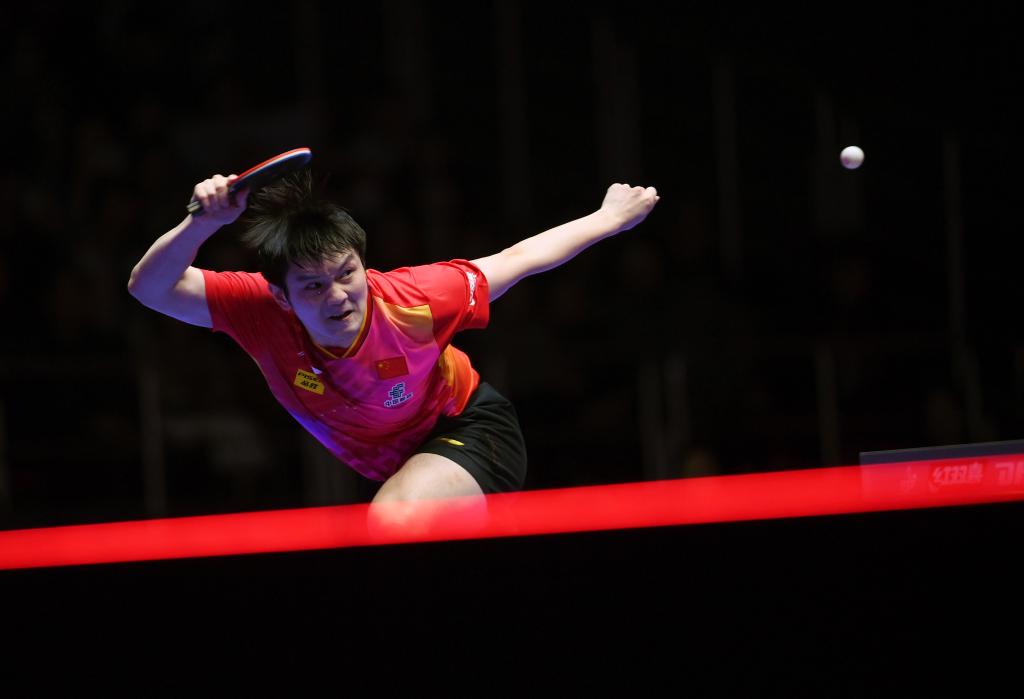 2月22日,樊振东在第一盘比赛中回球。新华社记者 陶希夷 摄