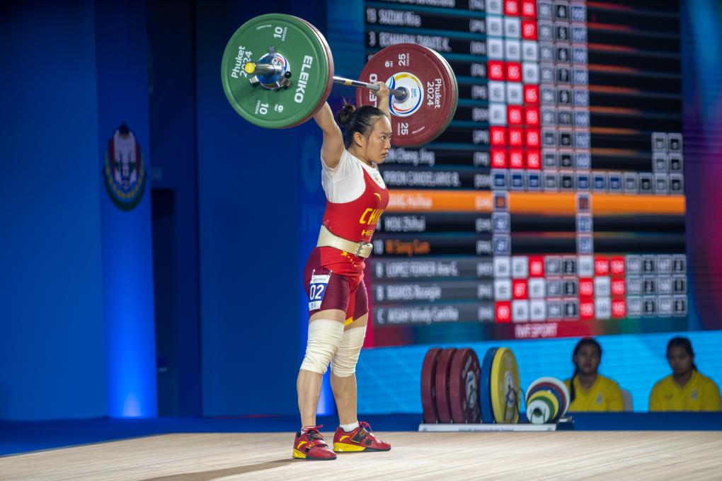 新华社泰国普吉4月1日电(记者林昊、王腾)4月1日在泰国普吉岛举行的2024年举重世界杯上,中国队选手侯志慧在女子49公斤级比赛中获得抓举金牌,并打破世界纪录。