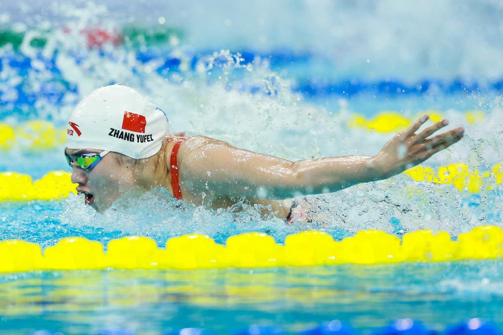 4月20日,张雨霏在女子100米蝶泳比赛中。新华社发(彭志刚摄)