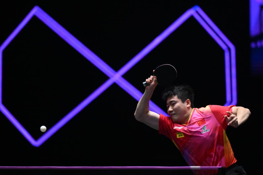 9月9日,梁靖崑在比赛中回球。新华社记者 张金加 摄