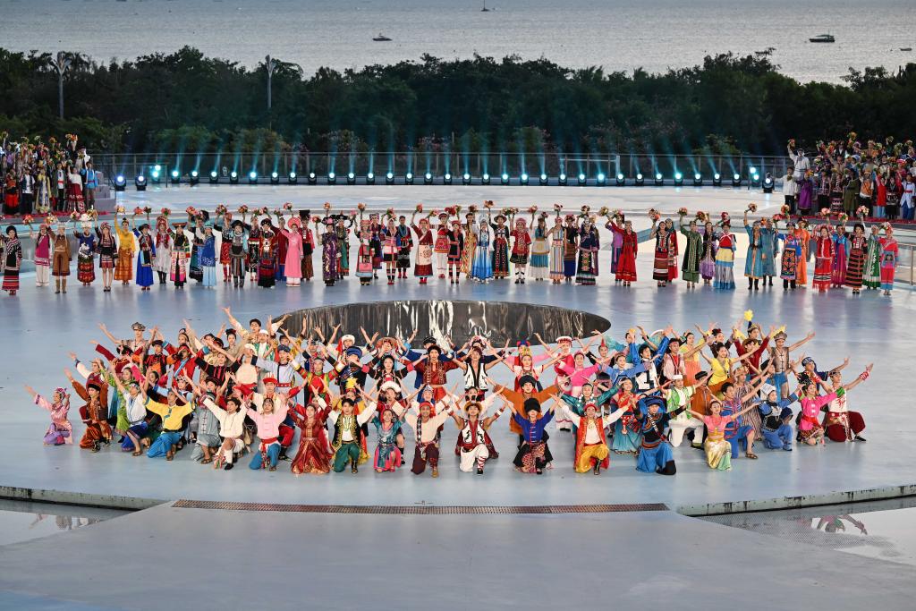 这是11月26日拍摄的联欢晚会现场。当日,第十二届全国少数民族传统体育运动会民族大联欢活动在海南省三亚市举行。新华社记者 郭程 摄