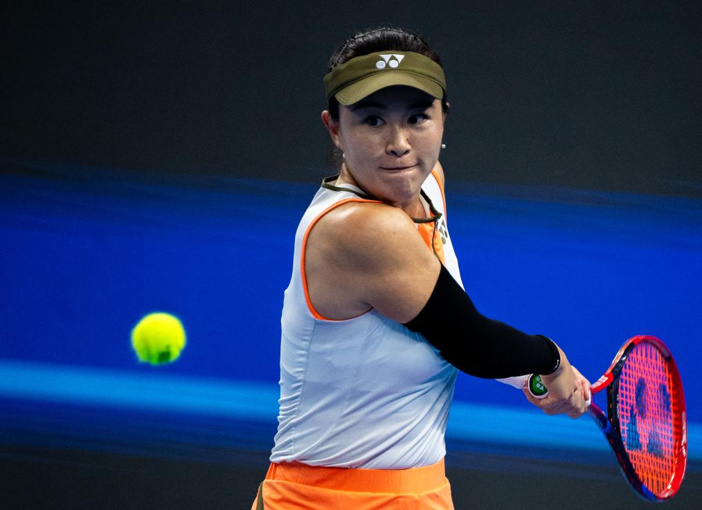 9月27日,郑钦文在比赛中。新华社记者 胡竞文 摄