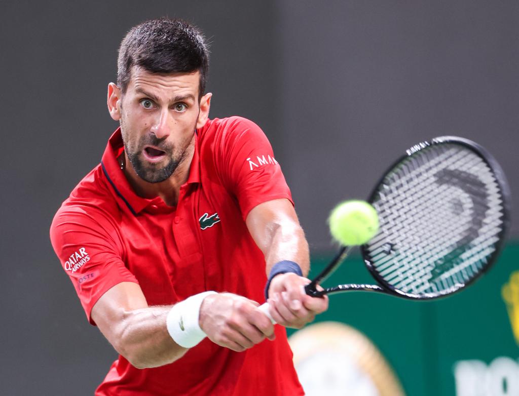 10月9日,焦科维奇在比赛中回球。新华社记者 丁汀 摄
