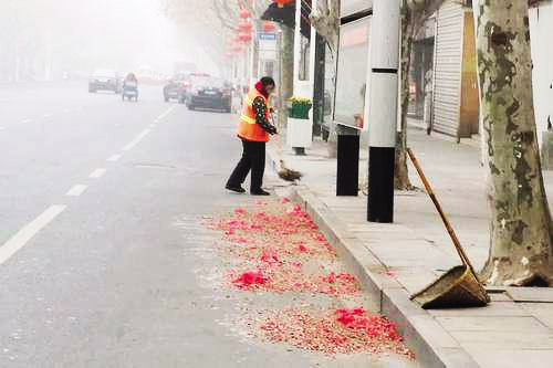 45岁的环卫工张秀生告诉笔者,“越是节假日,越不能停歇,把路面收拾得干干净净,老百姓走着舒坦,我心里也高兴。”这几天风大天冷,张师傅却干得特别有劲。不到2个小时,城区健康中街周边的垃圾全部清理干净。“最忙的时候就是下午四五点钟,路上的垃圾数量明显增加。”张师傅说,有时他一直忙到晚上6点才回家,第二天早上,不到4点他就从床上爬起来了。据悉,春节期间,城区的环卫工人基本全部在岗,许多环卫工人甚至提前到岗清扫街道,确保市容整洁。张师傅希望市民们春节燃放鞭炮时不仅要注意安全,还要保护环境卫生。