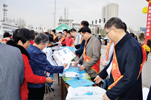 忻州市水资办的工作人员在街头进行涉水法律法规和节水知识宣传