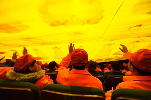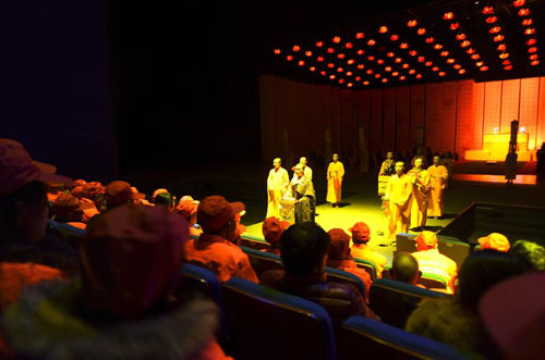 4月13日晚,五台山风景名胜区近200名环卫工人成为《又见五台山》大型情境体验剧场风铃宫内的座上宾。五一将至,为了表达对五台山景区美容师们——环卫工人的感恩之情,又见五台山剧场免费邀请200多名景区一线环卫工人免费观看节目,为大家送上了一份精神大餐。