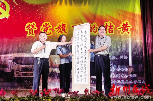 本报讯 7月3日晚8时,忻府区文联、忻府区作家协会和遗山诗社在忻州市住建局礼堂共同举办了一场大型诗歌吟诵演唱会,用诗的语言、歌的韵律抒发了对党的祝福和对环卫工人的赞美。7月1日是党的生日,在此之际,他们用诗歌表达对党的热爱,也表达对在党旗下默默付出的劳动者们的敬意。