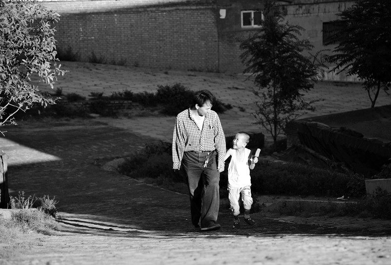王贵生给儿子买了一根雪糕,小志伟乐开了花。
