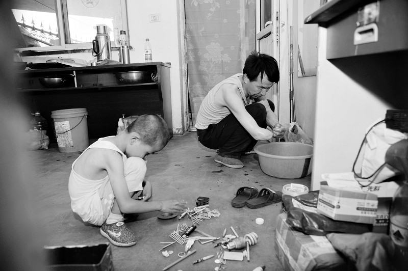 王贵生从外面捡的一些器械零件成了小志伟的玩具。