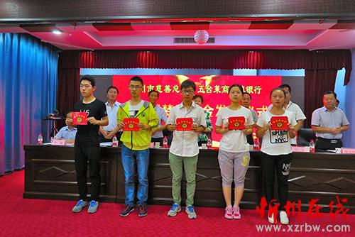 本报讯 在新学期即将来临之际,为了帮助今年考上大学的寒门学子顺利走进大学校门,忻州市慈善总会近日启动了“金秋助学、爱心圆梦”活动。8月23日下午,忻州市慈善总会联手五台县莱商村镇银行,向10名品学兼优、今年考上一本以上大学的五台籍贫困应届考生每人发放助学金5000元。