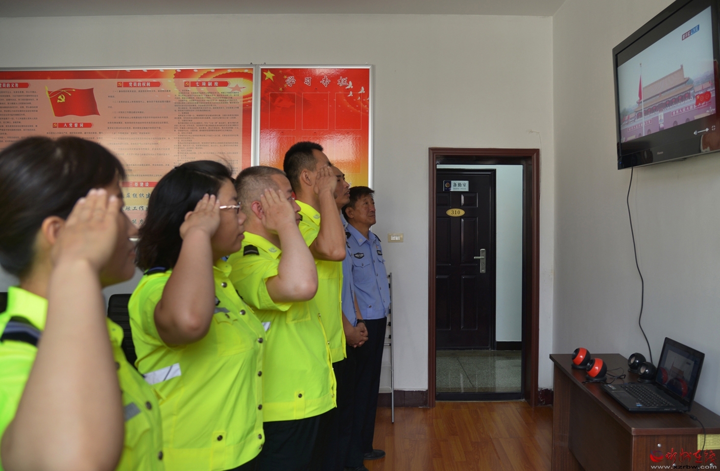 市市容环境卫生服务中心组织收看。王国栋 摄