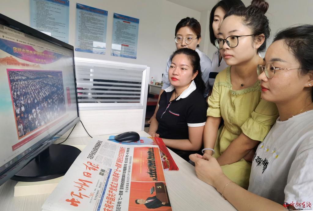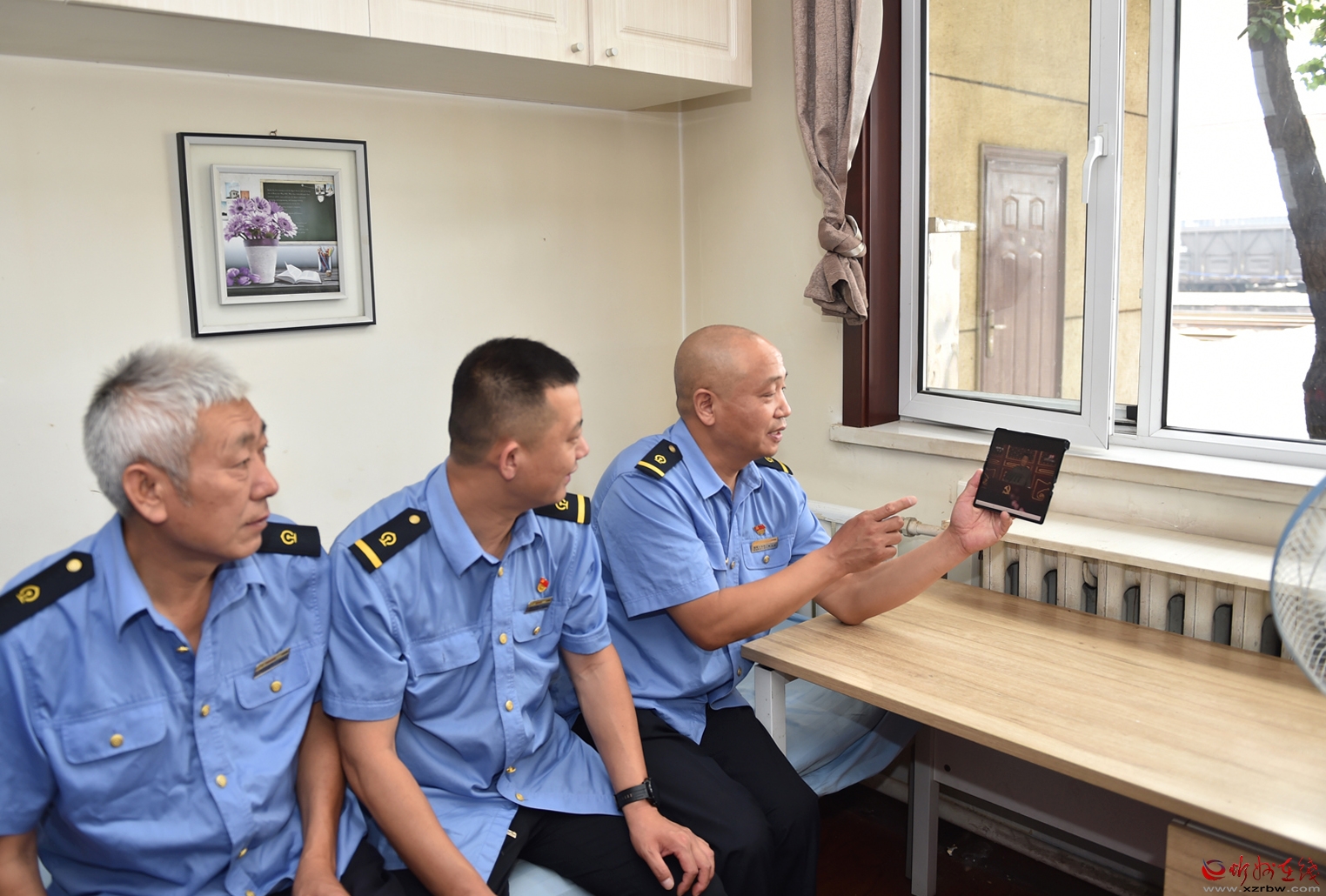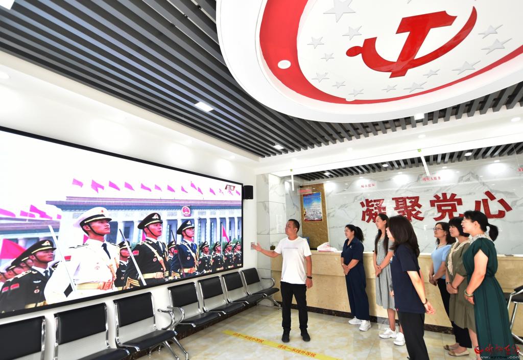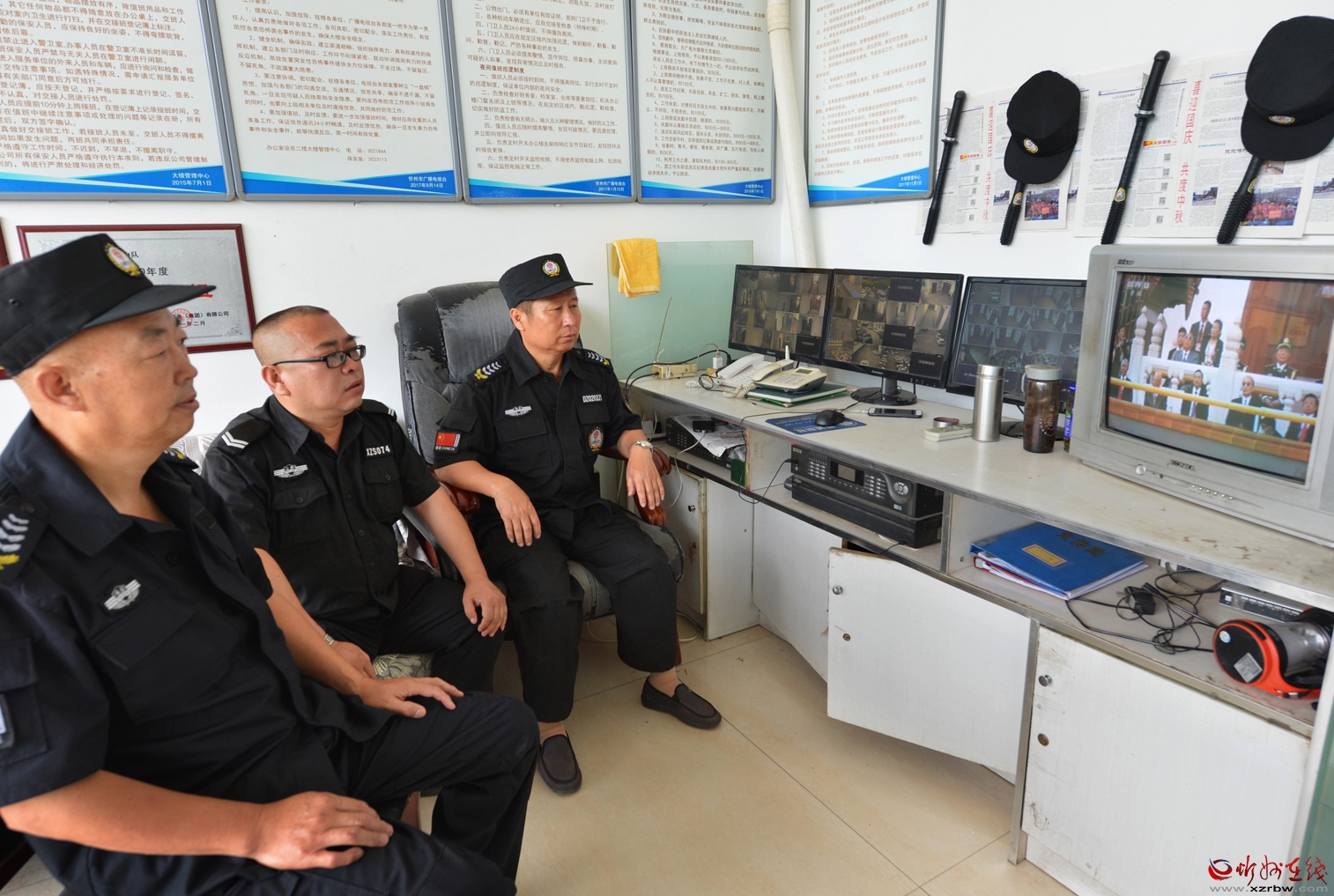 忻府区长征街街道办事处和平东街社区工作人员组织收看。冯晓磊 摄