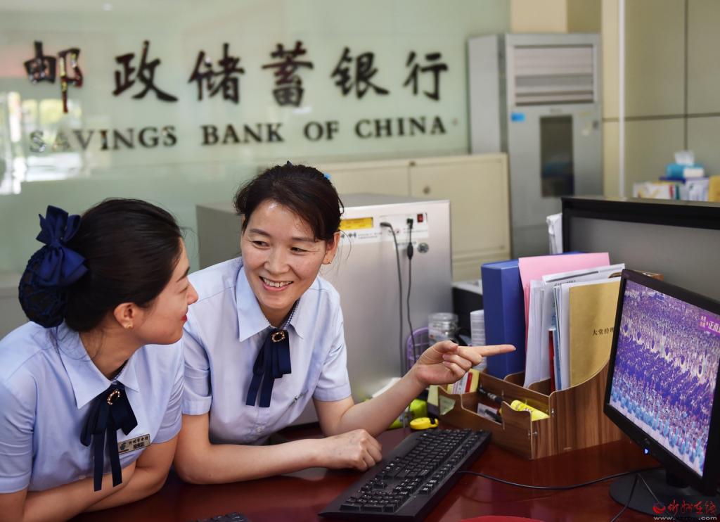中国邮政储蓄银行员工收看。冯晓磊 摄