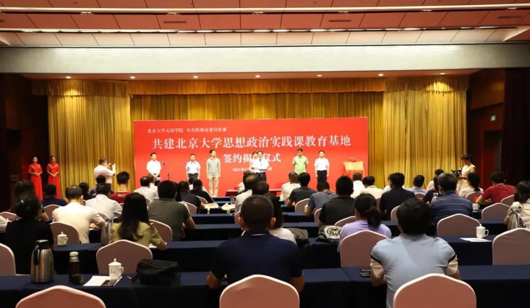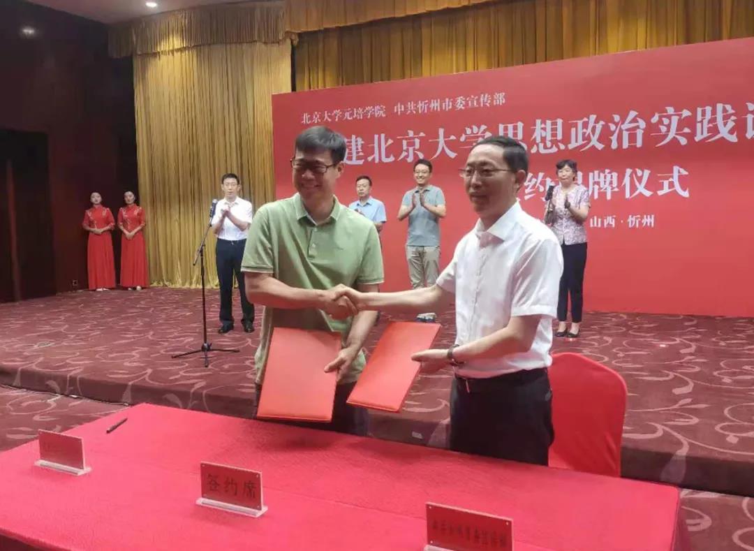 本报讯 (记者乔龙飞)8月2日,北京大学元培学院与忻州市委宣传部共建思想政治实践课教育基地签约揭牌仪式在泛华大酒店举行。北京大学元培学院党委书记吴艳红、副院长孙飞宇,市委副书记、政法委书记、宣传部长郭奔胜出席,市委常委、组织部长秦书义主持,北京大学元培学院部分师生,岢岚县委、偏关县委主要负责人及其他相关单位负责人参加。