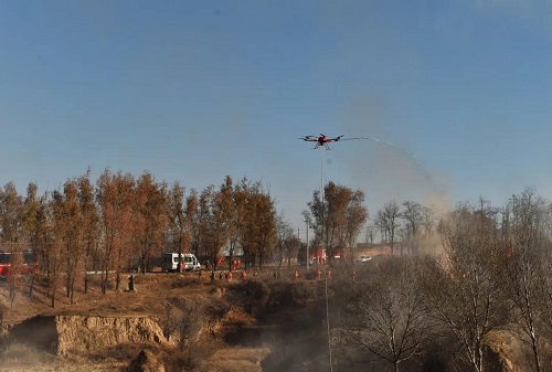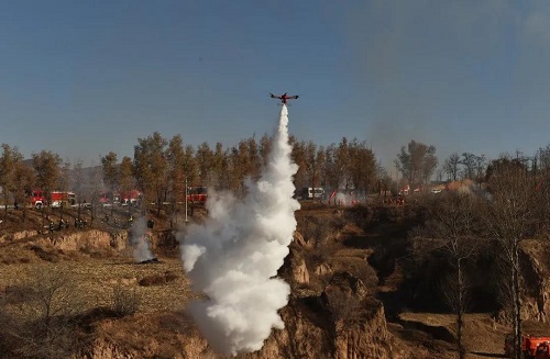 此次演练模拟11月11日9时50分,奇村镇护林员在巡查中发现,忻府区奇村镇南高村南平梁山附近突发山火,受风力的影响,火势迅速蔓延至林区,将引发森林火灾,威胁周边林场和企业的安全,情况危急。各部门积极响应,多级联动,调派救援力量,运用无人机、消防飞机等专业救援工具,开展了火灾扑救、余火清理等一系列应急处置工作,最终在各方力量的联动协作下,事故现场火灾被扑灭,演练结束。