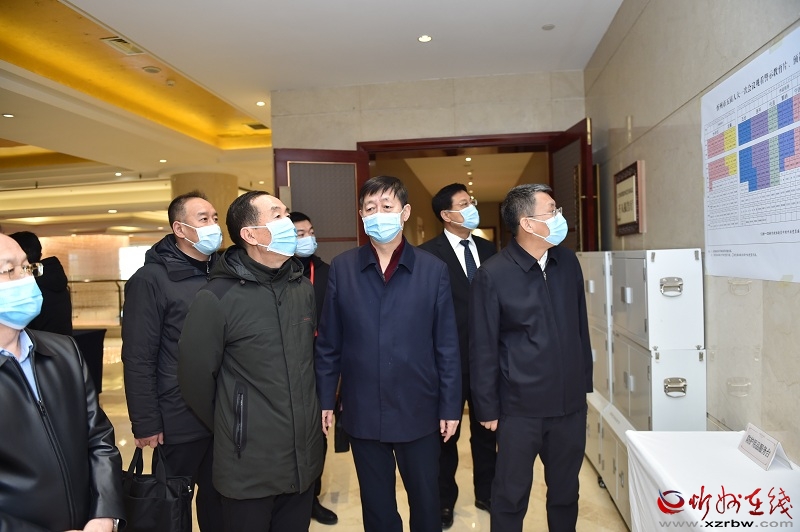 上午10时,魏广才一行来到泛华大酒店,查看了会场、会议室布置、设备摆放、座位安排、代表食宿、安全保卫、疫情防控等情况,对各工组工作人员辛勤付出表示肯定,对会场灯光、环境布置及代表通道的安检情况进行详细了解,并提出改进意见。