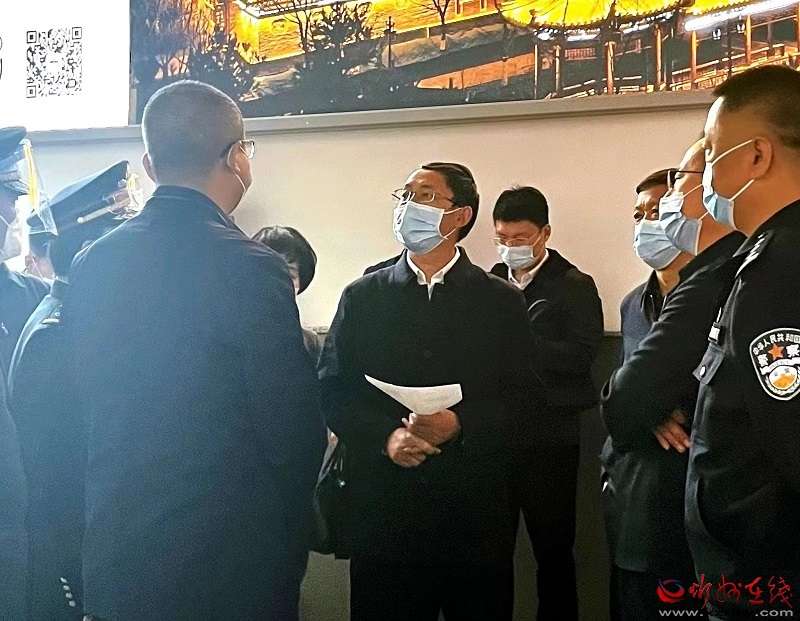 4月7日,为认真贯彻全省疫情防控落实会议、市疫情防控会议精神,织密扎牢外防输入防线,做好交通卡口及场站接返转运工作,市委副书记、政法委书记郭奔胜,副市长、市公安局长史红波,副市长崔峥岭赴我市交通卡口对疫情防控工作进行督导检查,市卫健委、公安、交通部门相关负责人参加。