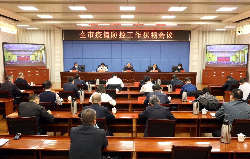 4月21日晚,全市疫情防控工作视频会议召开,传达学习贯彻省委、市委专题会议暨疫情防控领导小组会议精神,检点各项防控举措落实,对相关重点工作进行再部署再细化。市委副书记、政法委书记、市新冠肺炎疫情防控工作领导小组第一副组长郭奔胜主持会议并讲话,副市长、市公安局局长史红波,副市长崔峥岭出席会议,市卫健委、发改委、工信局、交通局、市场监管局、商务局、疾控中心、邮政管理局等部门负责同志参加。各县(市、区)设分会场。