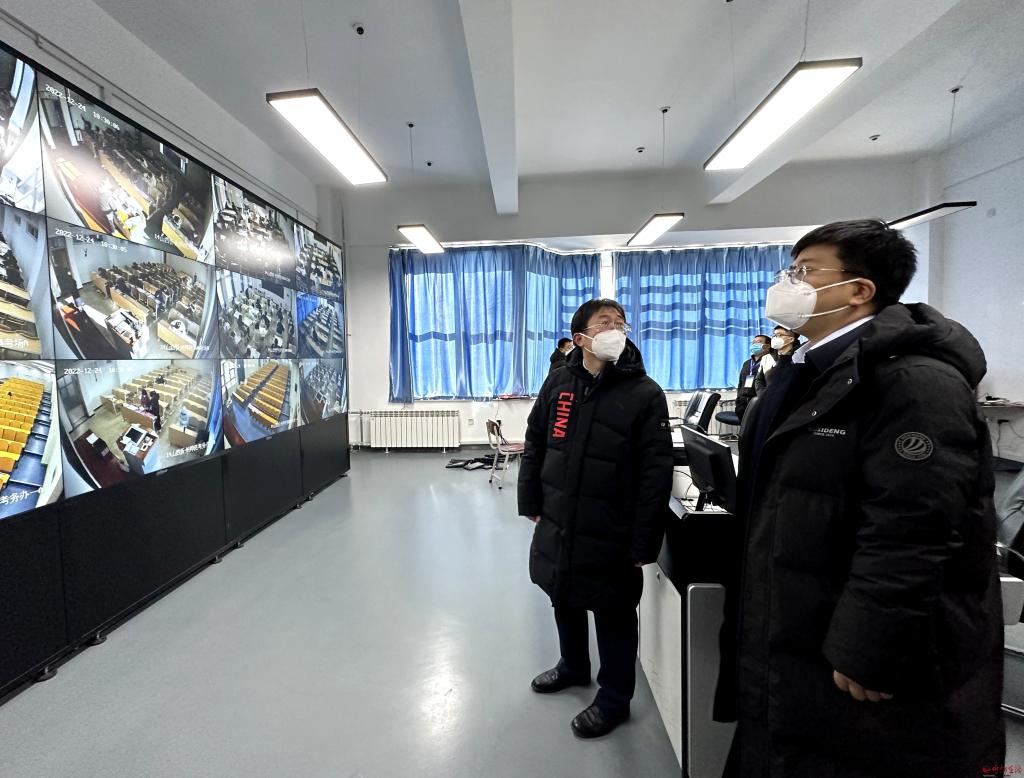 12月24日,2023年全国硕士研究生招生考试首日,副市长李硕来到我市部分考点检查研考工作。市教育局负责人参加。