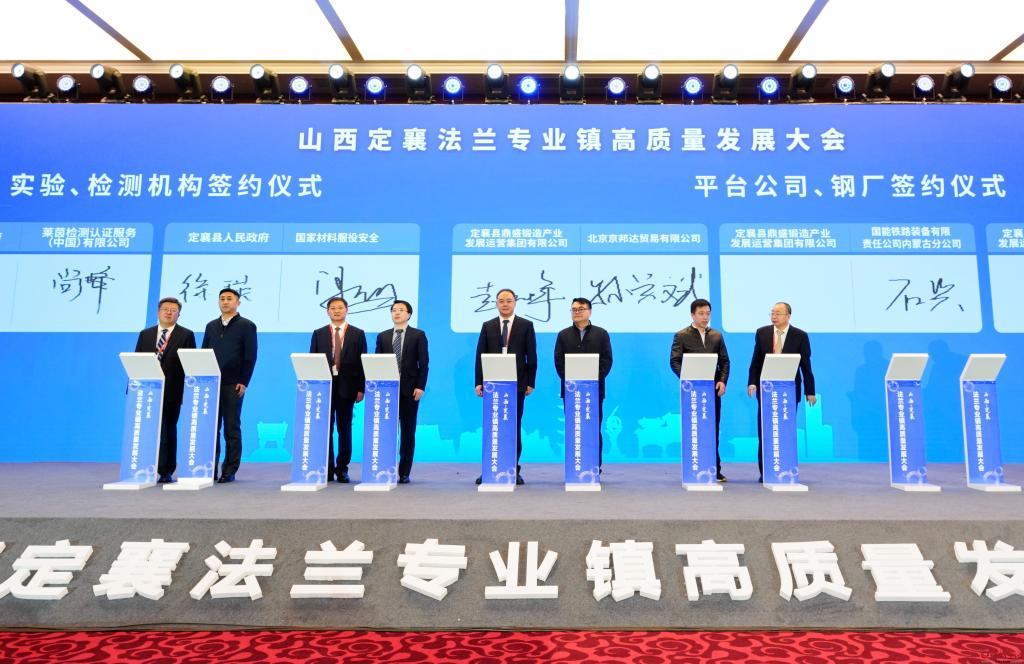 殷殷诚意,累累硕果。此次大会,定襄县与中国锻压协会、中国物流协会、中国信息通信研究院、中国二十二冶集团有限公司、华为技术有限公司等6家机构签订区域框架合作协议。与山西省跨境电子商务协会、德国莱茵公司、国家材料服役安全科学中心、京东物流、邯郸能嘉钢铁、河钢集团、清华大学天津高端装备研究院等5大类17家商协会、专业科研机构、链条企业签约。并为王成颁发定襄法兰专业镇高质量发展法律总顾问聘书,为唐建辉、王小枪、赵贵廷等6人颁发招商大使聘书,为中国锻压协会、中国物流协会、中国生产力协会、中国航空运输协会、北京忻州商会等颁发产业发展指导单位牌匾。