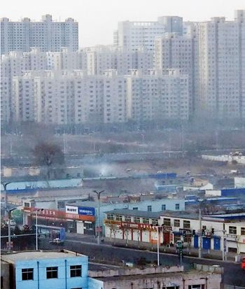 图2为开发区小檀村有人家在烧煤。一网友摄